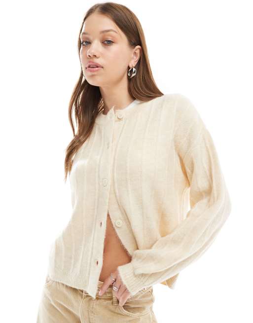 ASOS DESIGN fluffy oversized knitted cardigan in ecru Very well made.
