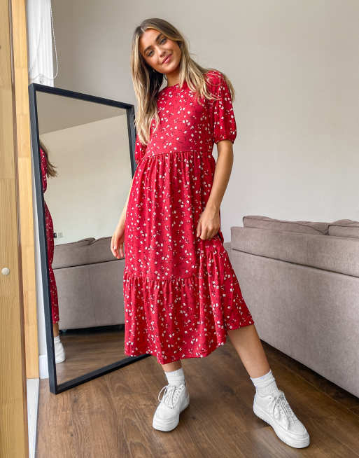 Stradivarius midi dress with smock detail in red floral Very well made.