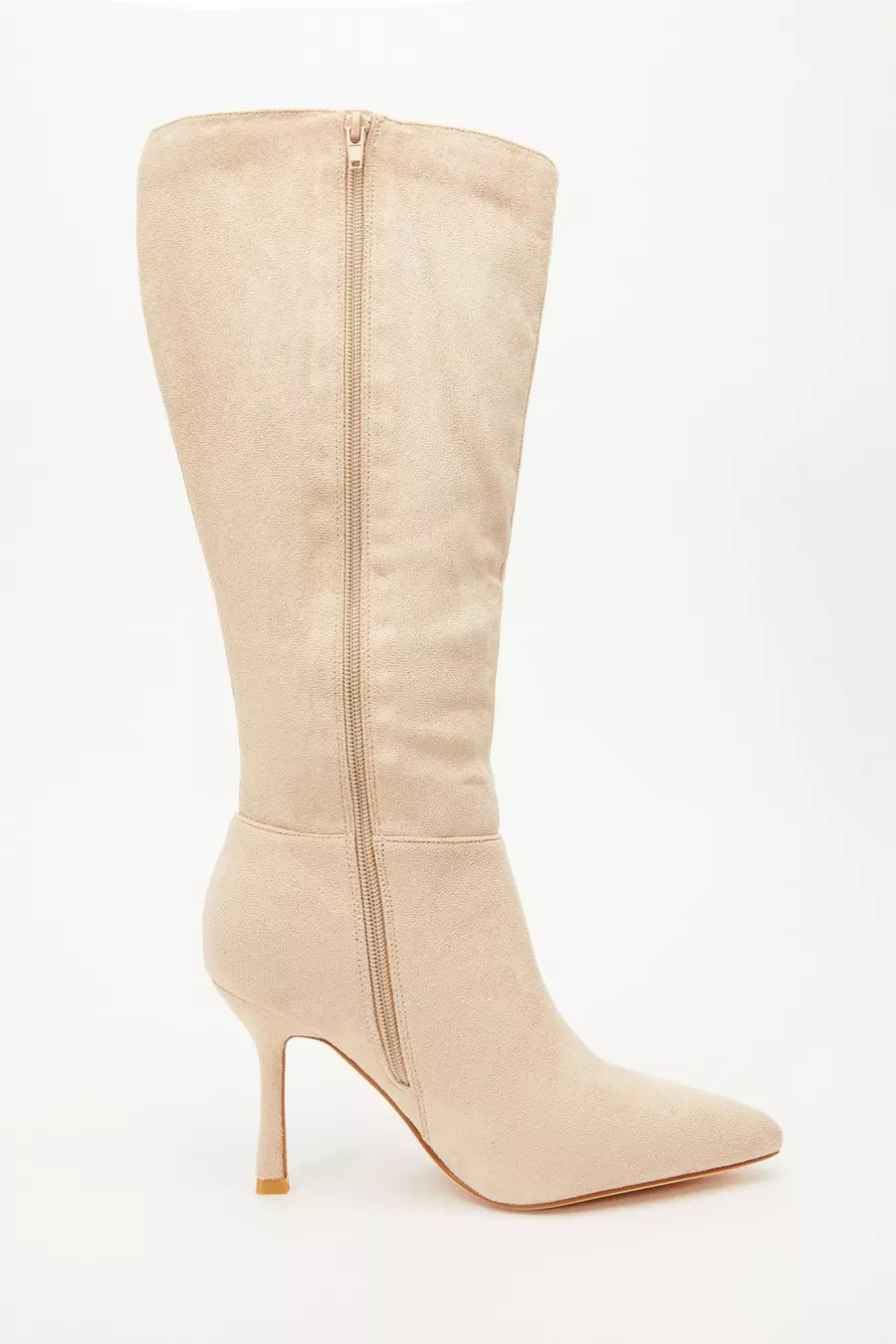 Cream Faux Suede Knee High Heeled Boots QUIZ Clothing Very well made.