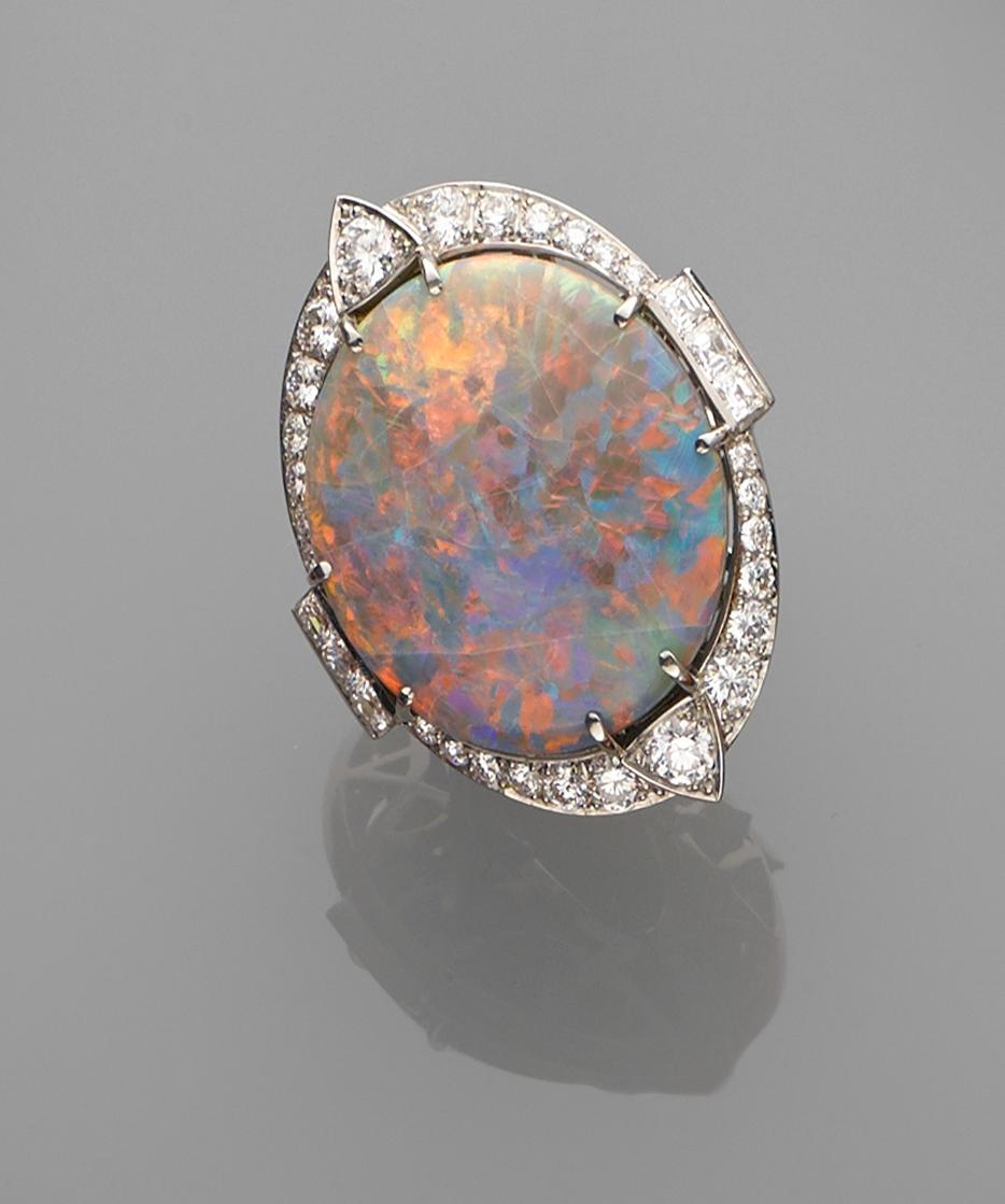 Art Deco Era Platinum Opal and Diamond Ring Gembank1973 Very well made.