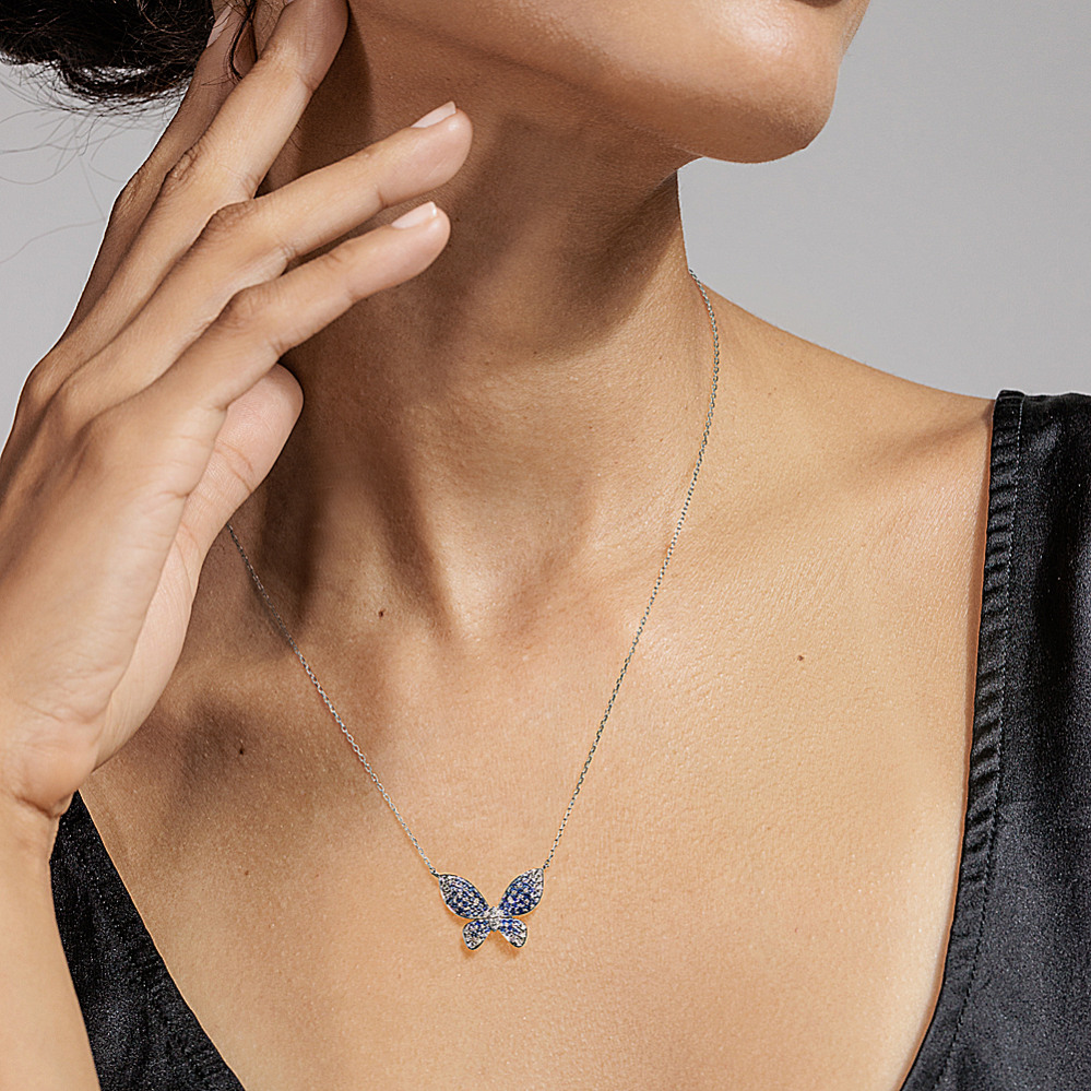 Mosaic Blue Sapphire Diamond Butterfly Necklace Shane Co Very well made.